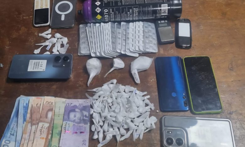 وحسب مصادر أمنية، فقد جرى ضبط المشتبه فيهما داخل المجمع السكني “ديار طنجة”، حيث أسفرت عملية التفتيش عن حجز 105 لفافات من مخدر الكوكايين، و522 قرصاً مهلوساً من نوع “ريفوتريل”، بالإضافة إلى قنينتين من غاز الضحك وميزان إلكتروني. كما تم حجز سيارة ودراجة نارية ومبلغ مالي يشتبه في كونه من عائدات هذا النشاط الإجرامي.