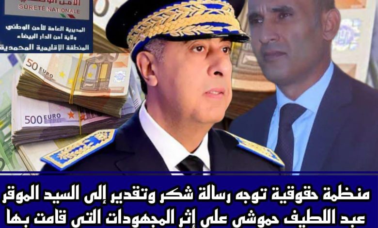 وأكدت المنظمة في بلاغها أن هذه العملية النوعية تعكس بوضوح يقظة ونجاعة الأجهزة الأمنية بالمحمدية، وتعزز ثقة المواطنين في عمل المؤسسة الأمنية تحت القيادة الرشيدة لصاحب الجلالة الملك محمد السادس نصره الله.