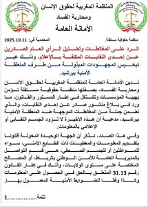 أصدرت الأمانة العامة للمنظمة المغربية لحقوق الإنسان ومحاربة الفساد بيانا شديد اللهجة، ردت فيه على ما اعتبرته “مغالطات وتضليلا للرأي العام” وردت في بلاغ صادر عن إحدى النقابات المكلفة بالإعلام، والتي اتهمت المنطقة الأمنية ببرشيد بعدم تزويد الجسم النقابي أو الصحفي بالمعلومات اللازمة.