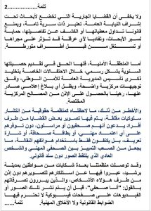 كما عبرت المنظمة عن قلقها من “انتشار ظاهرة تصوير القضايا الأمنية من قبل أشخاص يدعون الانتماء إلى مهنة الصحافة دون توفرهم على اعتماد أو بطاقة مهنية”، مؤكدة توصلها بشكايات من مواطنين في مدينة برشيد تعرضوا للتصوير دون إذن، وتم نشر صورهم أو مقاطعهم عبر صفحات على مواقع التواصل الاجتماعي تفتقر للضوابط القانونية والأخلاق المهنية.