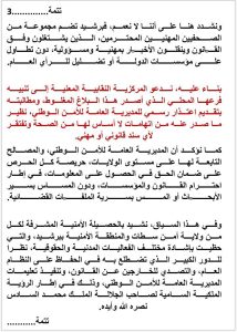 وشدد البيان على أن القضايا الجارية التي تخضع للأبحاث القضائية تبقى سرية بطبيعتها، ويمنع قانونا تداول تفاصيلها حماية لسير التحقيقات ومنع أي عرقلة محتملة، مضيفا أن البلاغات أو البيانات الإعلامية التي تصدرها المناطق الأمنية تخضع لإذن مسبق من المصالح المركزية المختصة.