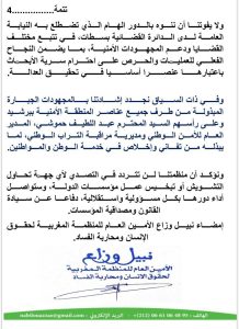 وفي المقابل، نوهت المنظمة بوجود عدد من الصحفيين المهنيين بمدينة برشيد الذين يشتغلون بمسؤولية واحترام للمؤسسات، داعية النقابة المعنية إلى تنبيه فرعها المحلي الذي أصدر البلاغ “المغلوط”، ومطالبتها بتقديم اعتذار رسمي للمديرية العامة للأمن الوطني.