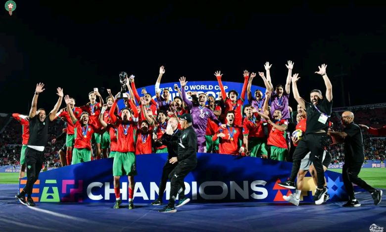 وجاء في برقية جلالة الملك ” فقد تتبعنا بابتهاج بالغ واعتزاز عميق مساركم البطولي الذي توجتموه بظفركم عن جدارة واستحقاق بكأس العالم لأقل من 20 سنة (نسخة الشيلي 2025)، وإنه لمن دواعي سرورنا وفخرنا أن نتوجه إليكم بأحر التهاني على هذا الإنجاز العالمي الجديد، الأول من نوعه في تاريخ كرة القدم المغربية “.