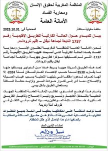 ودعت المنظمة في بيانها السلطات المحلية والجهوية والمصالح الوزارية المعنية إلى التدخل العاجل من أجل إصلاح وتأهيل الطريق رقم 1737، بما يضمن سلامة المواطنين وحقهم في التنقل في ظروف آمنة وكريمة، محذرةً من استمرار هذا الوضع الذي وصفته بـ“الإهمال غير المقبول الذي طال المنطقة منذ سنوات”.