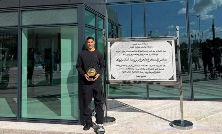ولفت حكيمي الأنظار خلال وصوله إلى المستشفى، بعدما اصطحب معه الكرة الذهبية الإفريقية التي تُوّج بها في حفل جوائز الكونفدرالية الإفريقية لكرة القدم “كاف”، كأفضل لاعب في القارة السمراء لعام 2025.