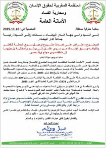 ودعت المنظمة إلى مراجعة القرار وفتح نقاش مؤسساتي واسع يراعي المصلحة العامة قبل الشروع في تفعيل المشروع، مؤكدة أن حسن اختيار موقع هذه الأسواق ذات الأهمية الاستراتيجية يظل مسألة جوهرية لضمان استمرار دينامية التزويد والتوزيع داخل الجهة.