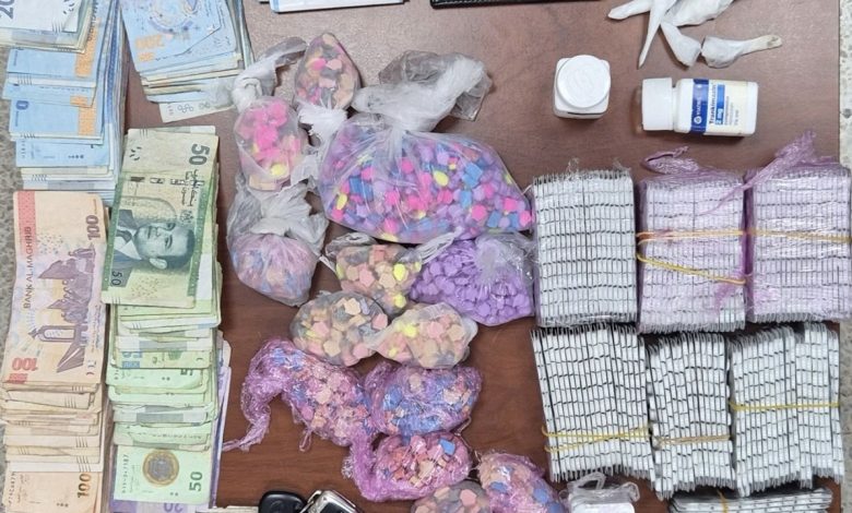 وقد جرى توقيف المشتبه فيهم متلبسين بترويج المخدرات بالمنطقة القروية “مدشر بدريوين” بضواحي طنجة، حيث أسفرت عملية الضبط والتفتيش عن العثور بحوزتهم على 6976 قرص مخدر من أنواع مختلفة وجرعات من الكوكايين، علاوة على مبلغ مالي من متحصلات ارتكاب هذه الأفعال الإجرامية.